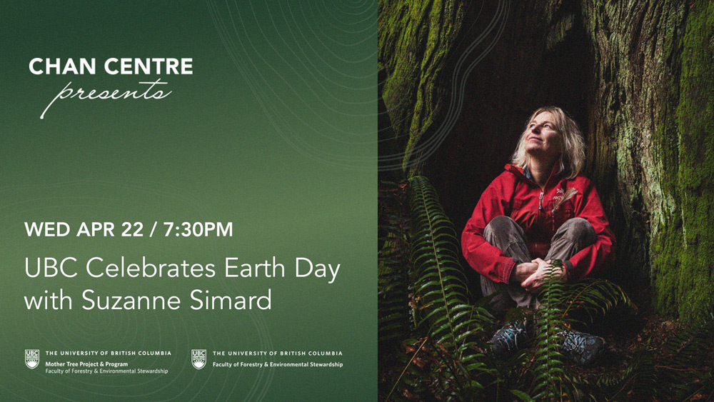 Wed Apr 22 2026 at 7:30PM at Chan Shun Concert Hall Celebrate Earth Day with leading voices in ecology, Indigenous stewardship, law, literature, and music, including author and UBC Faculty of Forestry and Environmental Stewardship Professor Suzanne Simard, as she launches her newest book, When the Forest Breathes, the highly anticipated follow-up to her bestselling book, Finding the Mother Tree. Featuring an immersive evening of performance alongside a panel conversation exploring the future of forests and our shared responsibility to the living world, this event asks a vital question: how do we reimagine our relationship with forests—and with one another—in a time of ecological urgency?Book Tour